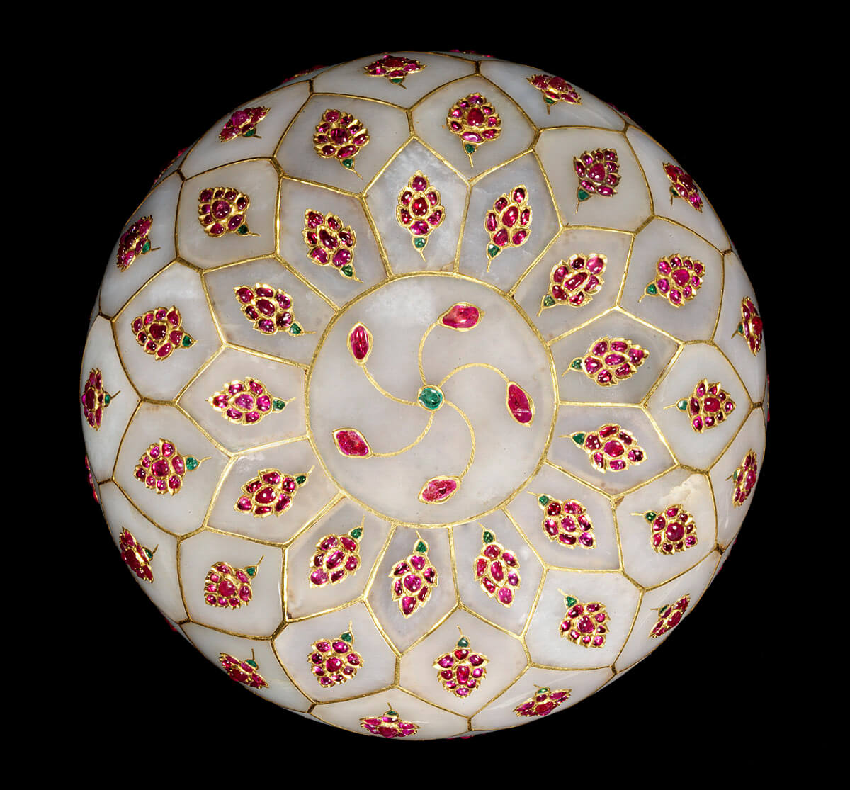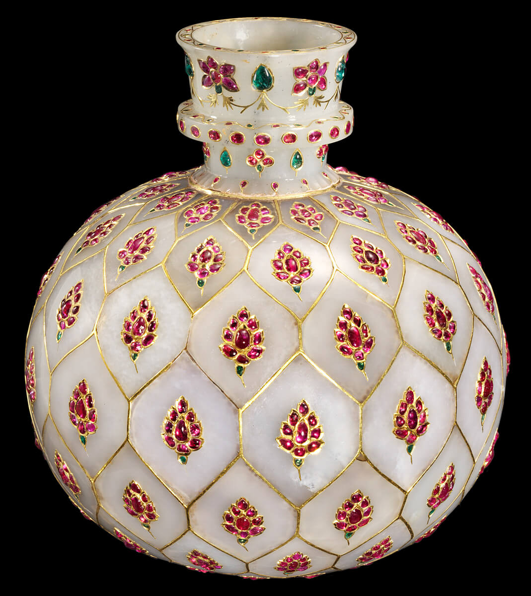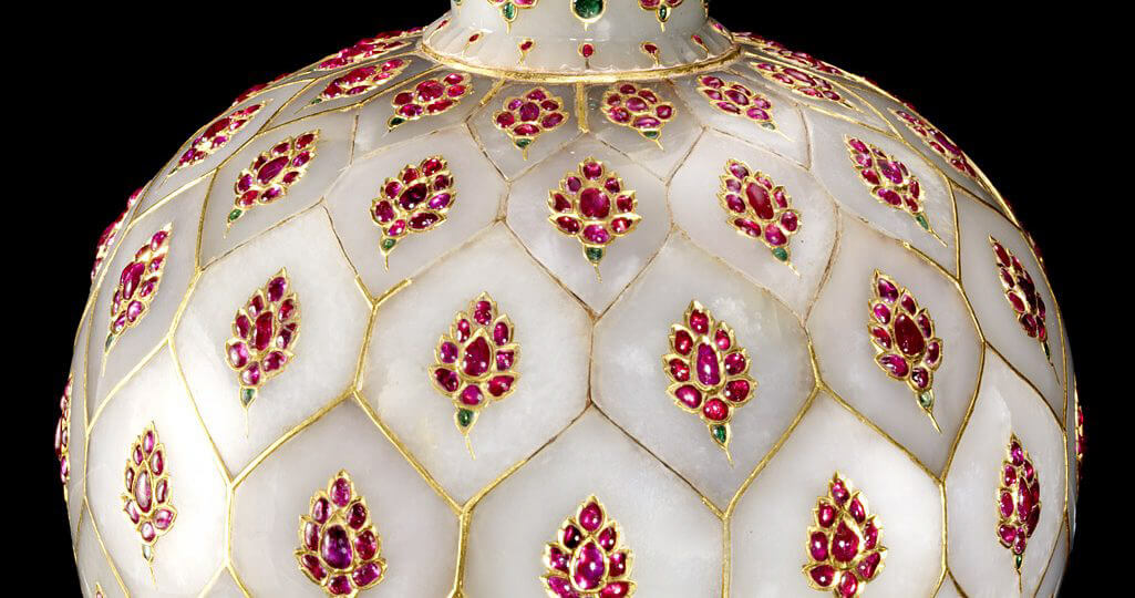 يشب، منحوت، ومصقول، ومنقوش بأدوات الصاغة، وألواح اليشب مع الأحجار الكريمة.