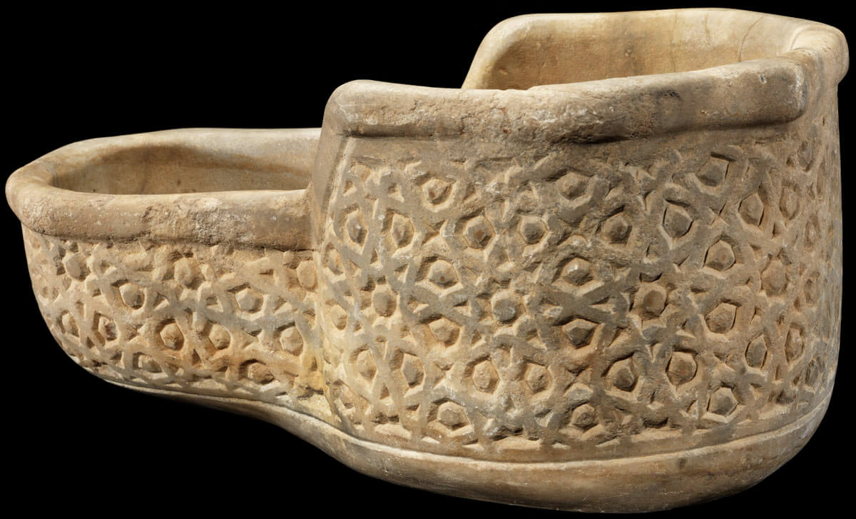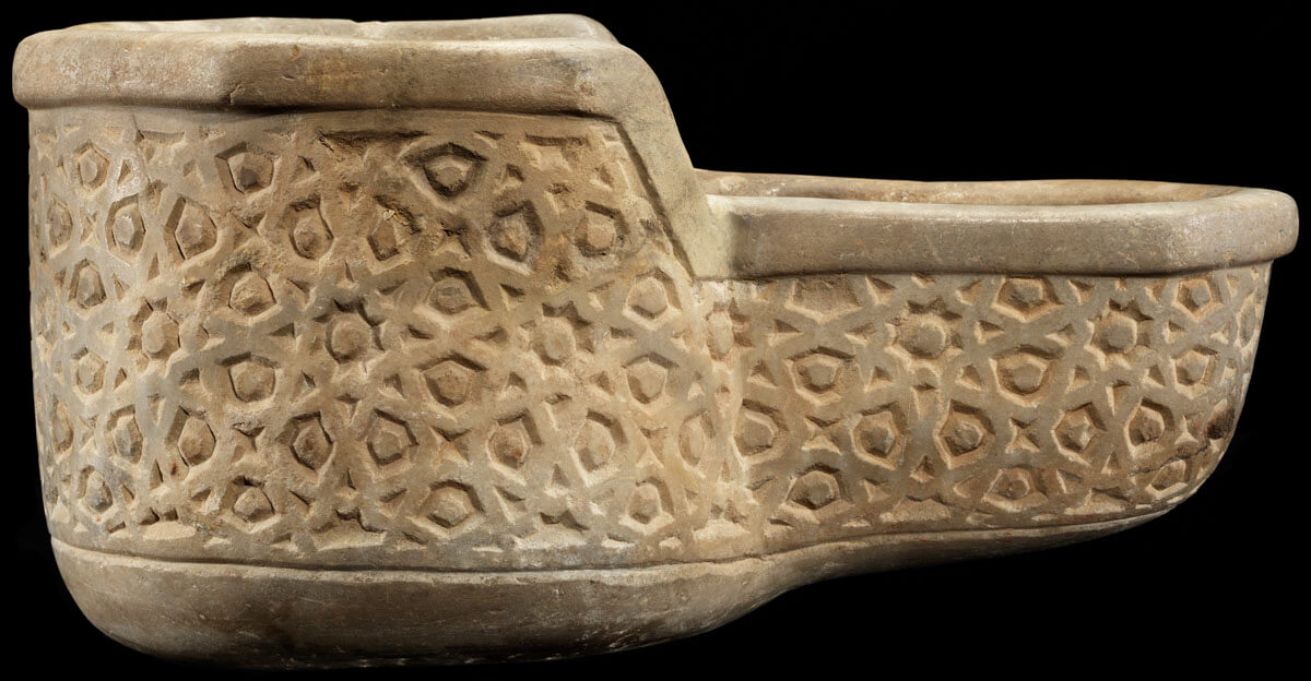شاهد قبر من الرخام، عليه كتابات بالخط الكوفي تتضمن اسم ونسب السيدة أم الفتوح، بنت القائد لؤلؤ، وتاريخ وفاتها في