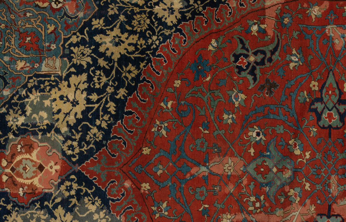 مصبوغة، ومنسوجة، ومحبوكة (وبر). الطول: 726 سم، العرض: 320 سم. غرب الأناضول حوالي النصف الأول من القرن 110 هـ /16