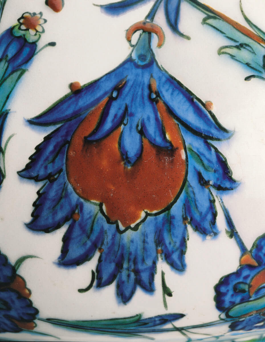 Wheel-thrown and modelled, underglaze engobe, slip- and stain-painted, transparent colourless glaze
