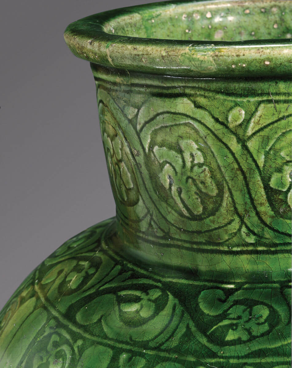 Folio from a Qur’an manuscript in ‘eastern Kufic’ with decorated ground of palmettes