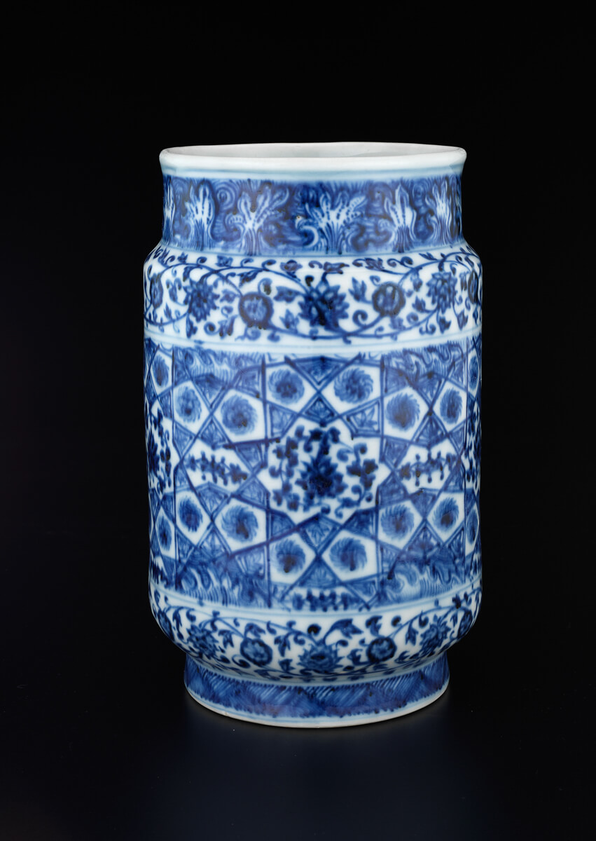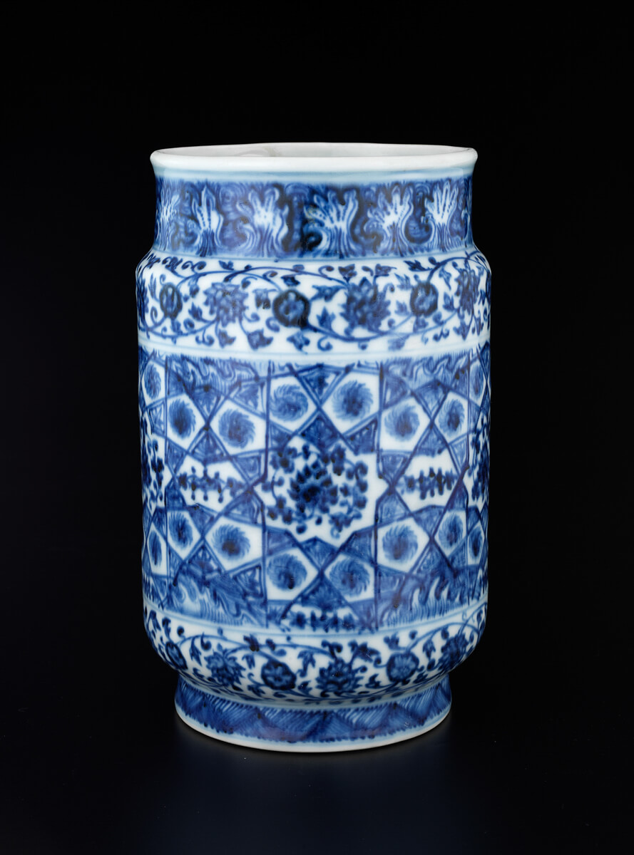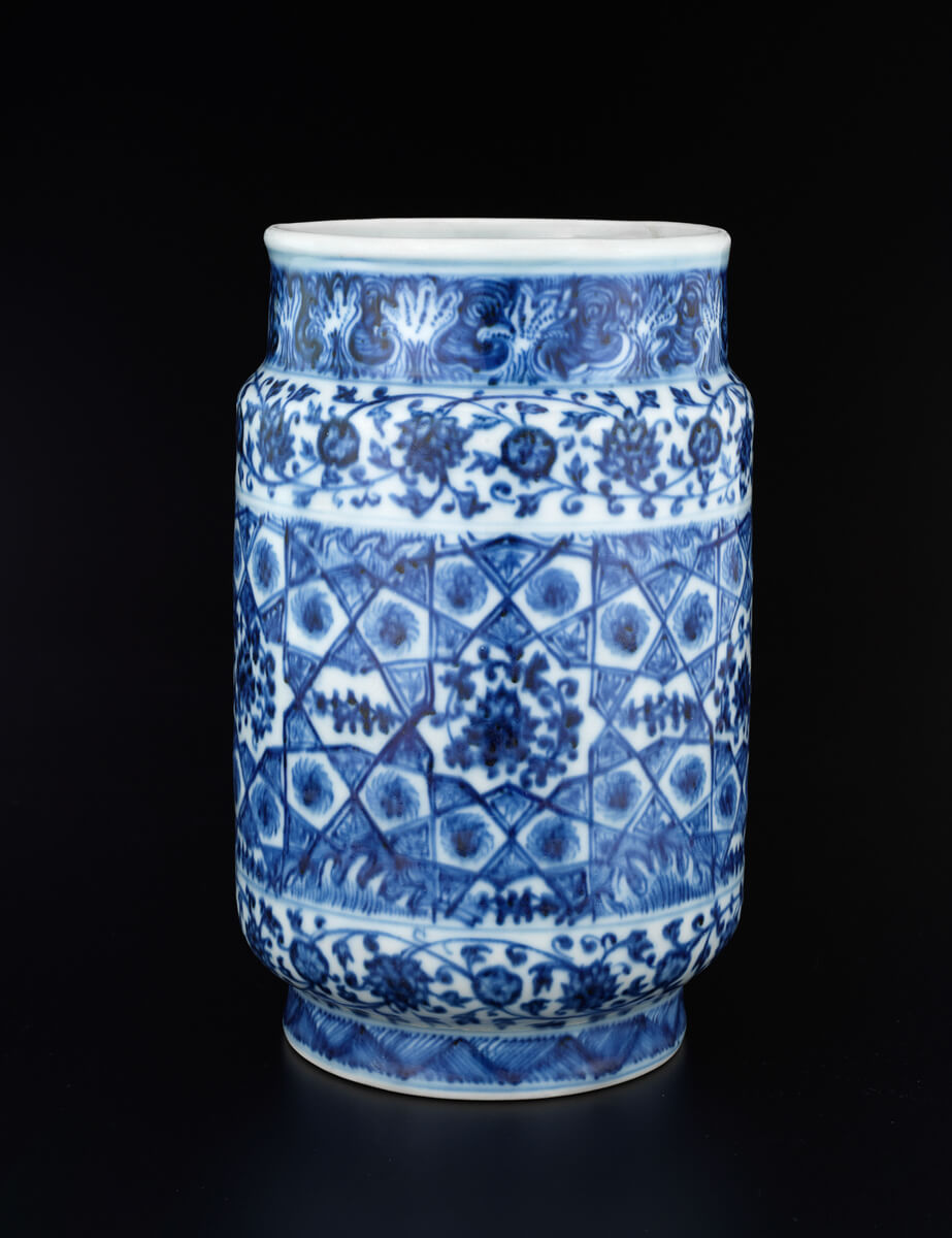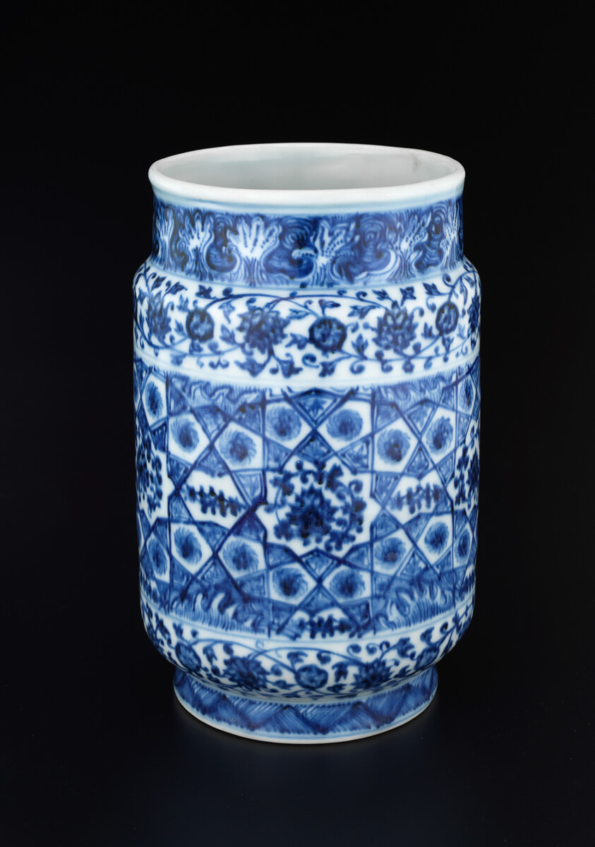 Wheel-thrown, painted in cobalt blue stain, transparent colourless glaze