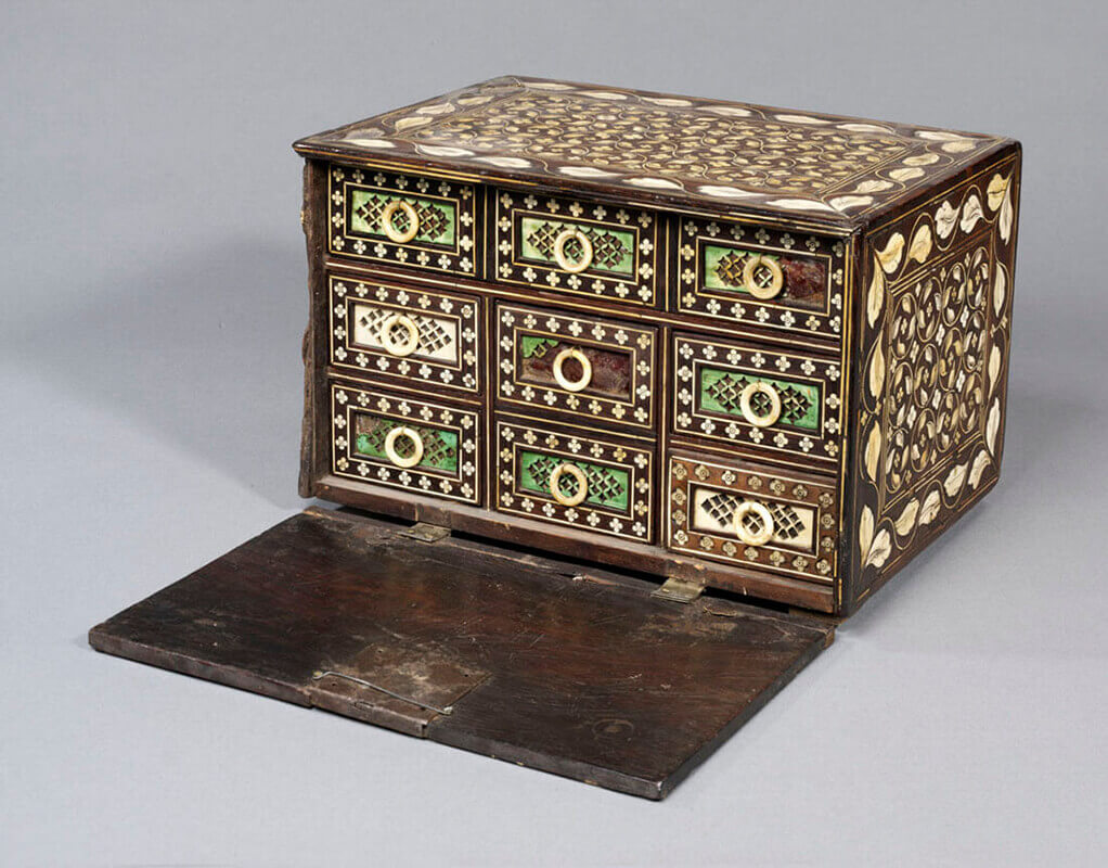 Wooden panel with thuluth and naskhi inscriptions naming the donor and artist, including Qur’anic passages