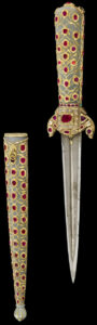 Sword with parrot-head pommel set with rubies, emeralds and diamonds; gold hilt, inscribed blade