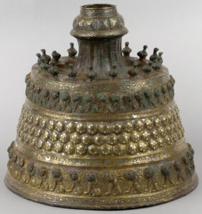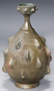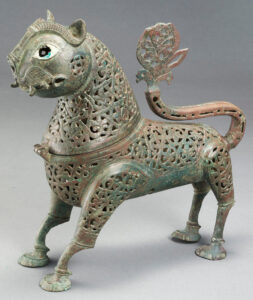 The al-Sabah Collection contains almost two thousand items of metalwork ranging from elaborately worked vessels inlaid with precious metals to simply cast bronze finials in the form of animals. Islamic metalworkers, whether in Cairo or Herat, often fashioned relatively simple forms covered the surface in dazzling engraved or precious metal-inlaid patterns of arabesque interlace, processions of animals or long benedictory inscriptions. Objects with calligraphy as decoration occur more frequently in metalwork than any other medium used for objects of utility. These range from benedictory inscriptions to verses from the Qur’an to lines of poetry, and sometimes include the signatures of the artists.