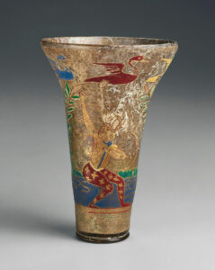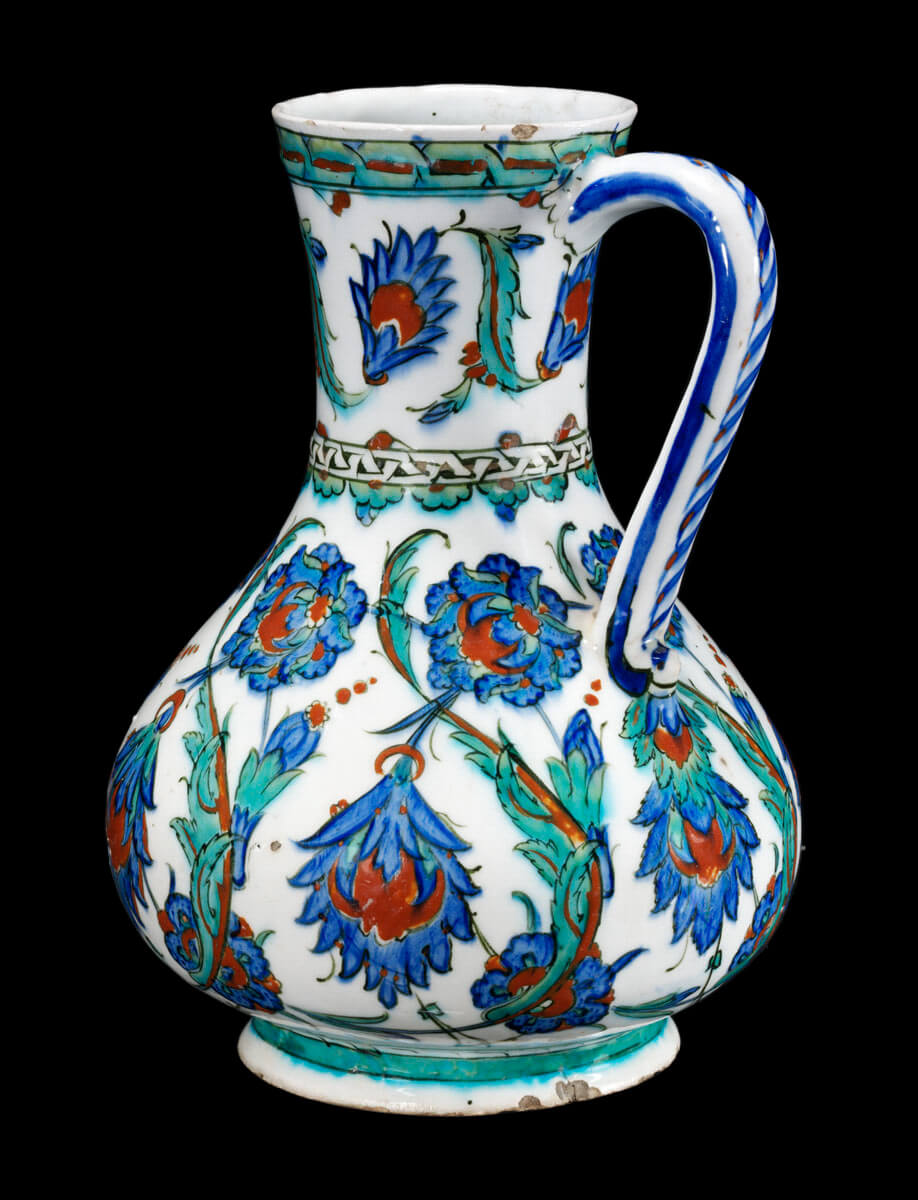 شكلت بواسطة الدولاب، وكسيت تحت التزجيج، وطليت بالأصبغة، ومصقولة بتزجيج شفاف.