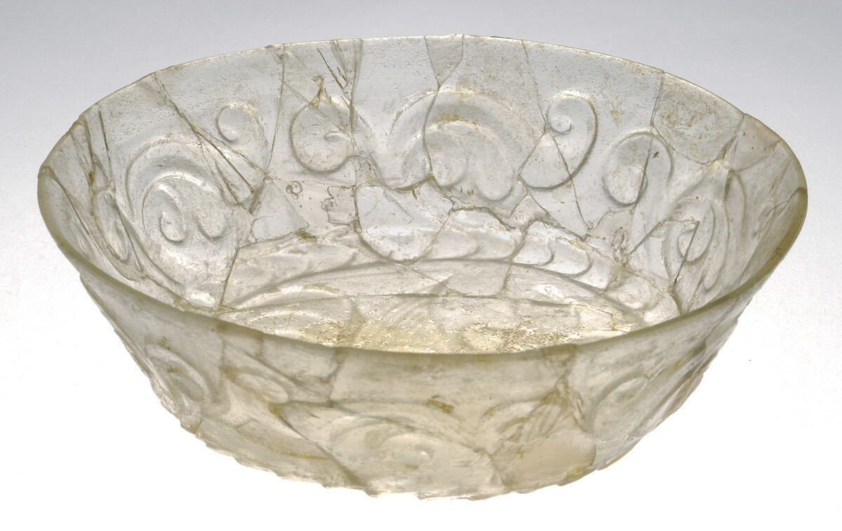 صنعت بطريقة النفخ، وُنفذ التصميم بأدوات الحفر.