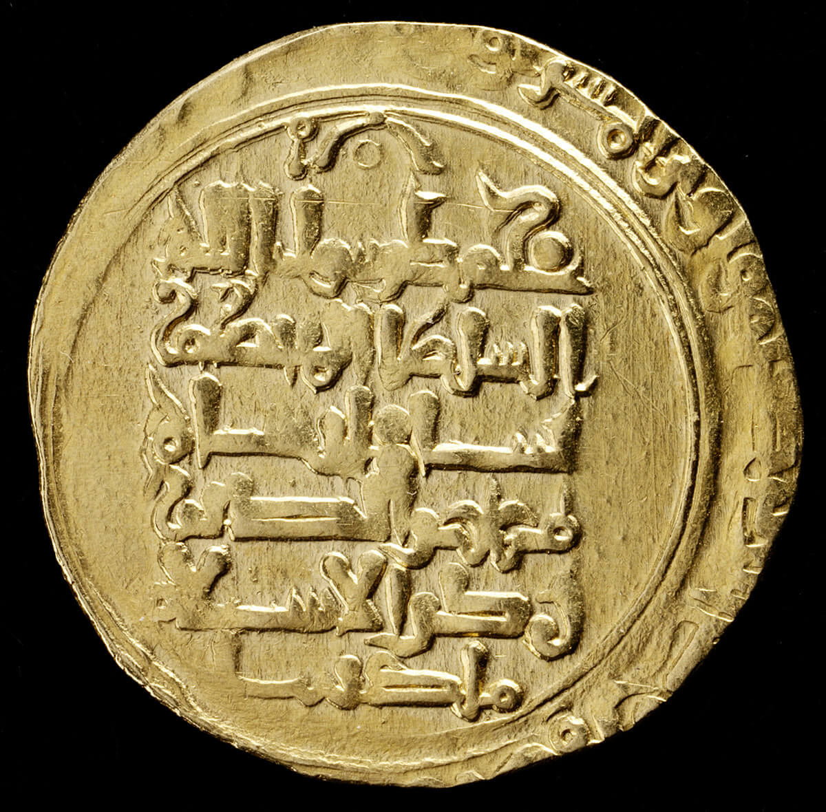 قطعة من نسيج حريري، مؤلف من سلسلة أشرطة أفقية، تتكرر بين أشرطة تتضمن خراطيش تحتوي على كتابات بخط النسخ، “العز
