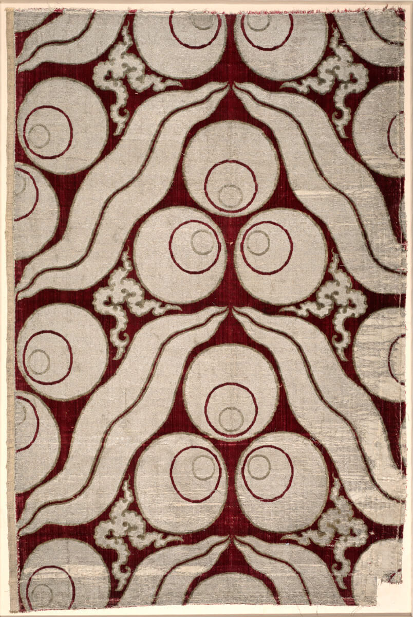مخمل حريري مقصب ومفَّرغ بخيوط معدنية.