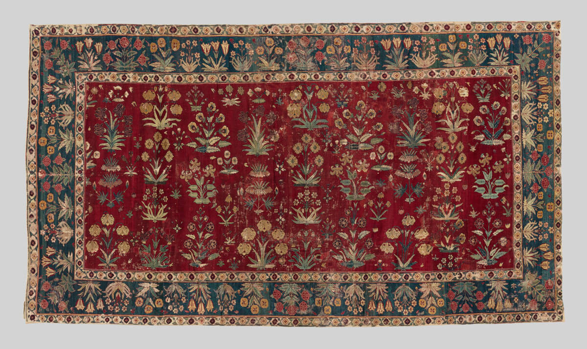 منمنمة مرسومة على حرير، ُتصور أمي َرين بصحبة اثَنين من أفراد الحاشية، وقد تزينا بالحلي والثياب الفاخرة، وفوقها عباءات ذات