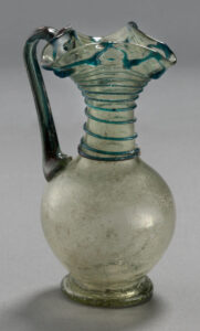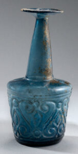 قارورة من الزجاج ذات عنق مخروطي، وحافة منفرجة.