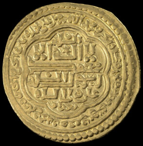 عملة من الذهب (دينار)، ُتنسب إلى الحاكم الساماني نصر الثاني ابن أحمد الثاني (حكم بين عاَمي 301 – 331هـ /