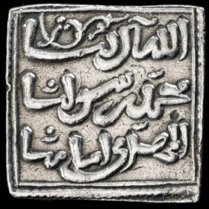عملة من الفضة (درهم)، ُتنسب إلى الموحدين الذين َحكموا شمال أفريقيا وبلاد الأندلس، ُضربت في فاس، المغرب، غير مؤرخة (