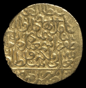 عملة من الذهب (دينار)، ُتنسب إلى السلطان السلجوقي ملكشاه ابن محمود (حكم بين عامي 465 – 485 ه / 1072