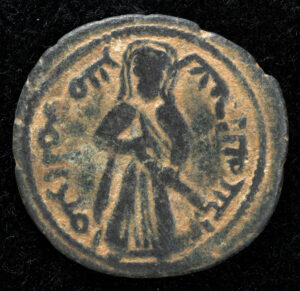 عملة من سبيكة نحاسية (فلس) على النمط المسمى “الخليفة الواقف”