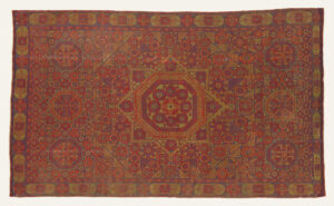 مصبوغة، ومنسوجة، ومحبوكة (وبر). الطول: 726 سم، العرض: 320 سم. غرب الأناضول حوالي النصف الأول من القرن 110 هـ /16