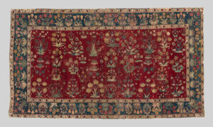 سجادة من الصوف، مصممة بشكل حديقة، من أربعة أقسام (بالفارسية: تشهار باغ)، مع صور أشجار مزهرة، مق َّسمة بواسطة قنوات